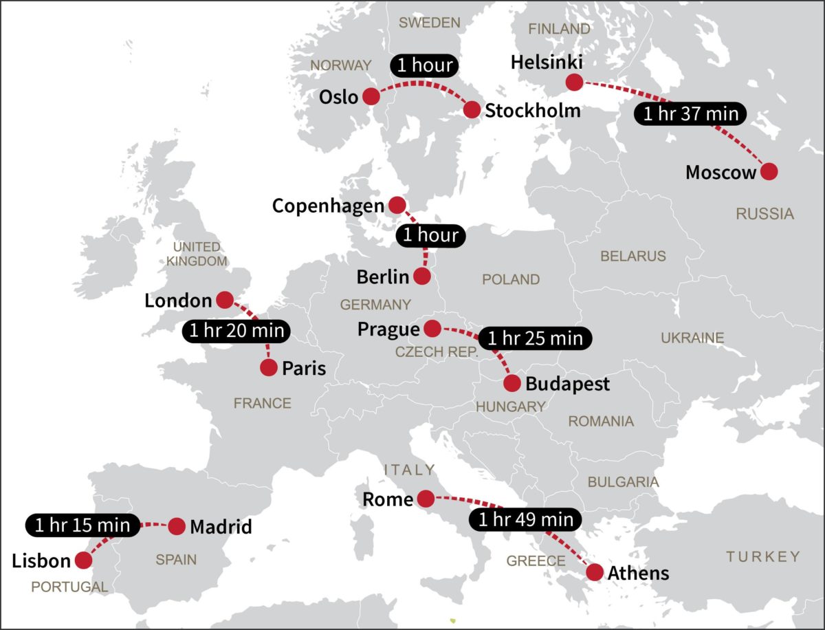 • Stockholm and Oslo are the same flight time apart as Los Angeles and San Diego.