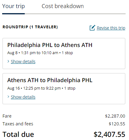 Sample Savings: Philadelphia to Athens goes for $2,407 round-trip. Compared to regular published fares of about $3,000 to $4,000.