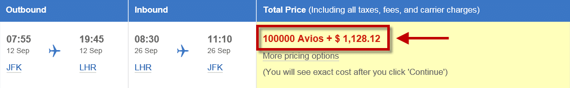 | British Airways* | New York - London | 136,000 to 160,000 | 100,000 | 36,000 - 60,000 (27% - 38%) | 170,000 (AA miles) | 100,000 | 70,000 (41%) | |